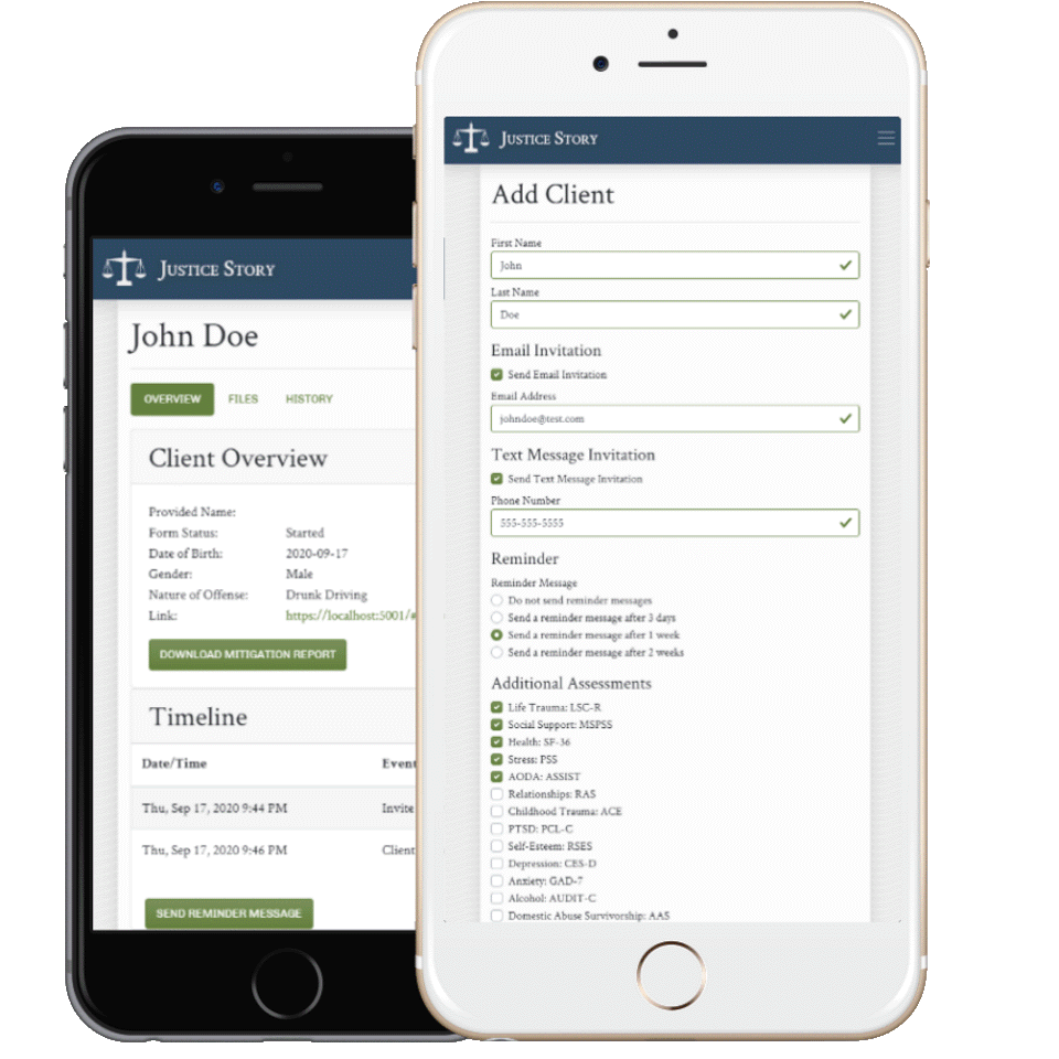 We believe no client should ever have their backgrounds unexplored prior to an important sentencing or negotiation. Justice Story lets you perform cost-effective, in-depth, and comprehensive client interviews.